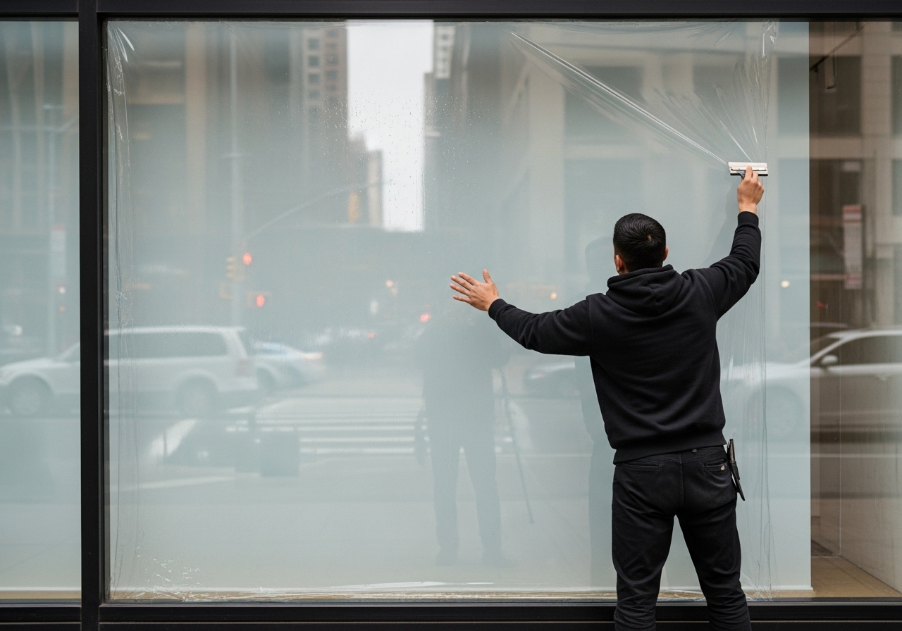 We apply water repellent glass shield to increase you storefront clean apeal up to 2X. We also provide storefront solar UV-film application as well as gratify and scratch protective films. If your storefront gets vandalized - replacement of a film is a fraction of glass replacement.