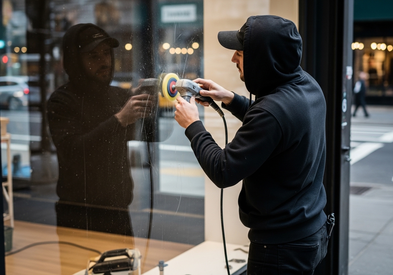 As window lovers, we try to do everything possible to extend life for your storefront. Before we replace scratched glass we usually offer storefront owners to allow us to try to restore it by polishing the scratched glass. Our success rate is 90-95% and the cost savings are usually 3X.