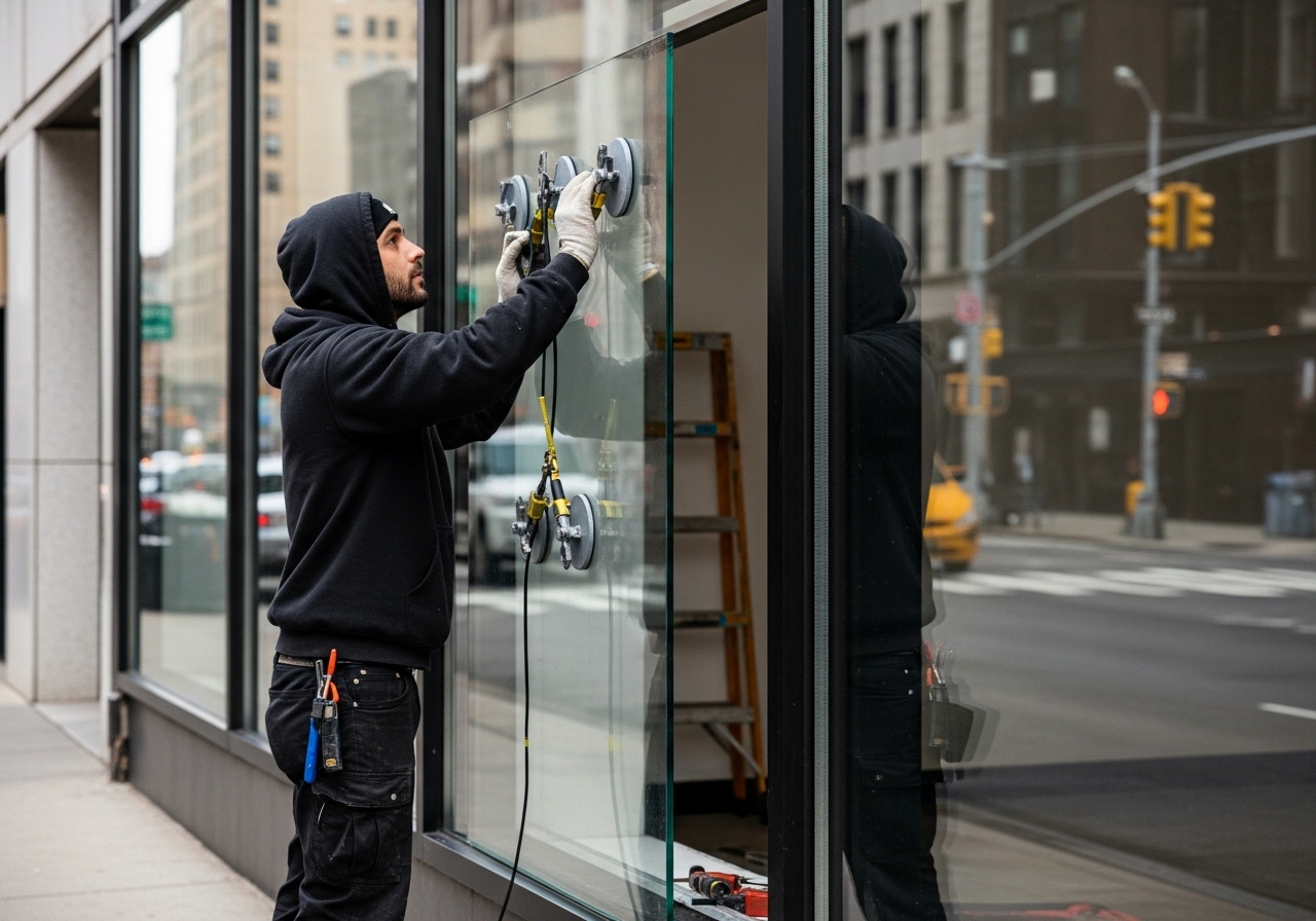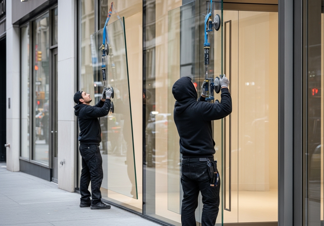 Replacement of a broken glass in a storefront is always time sensitive and urgent and the glass must match the other glass perfectly. At Big Apple, we equally focus on on both.