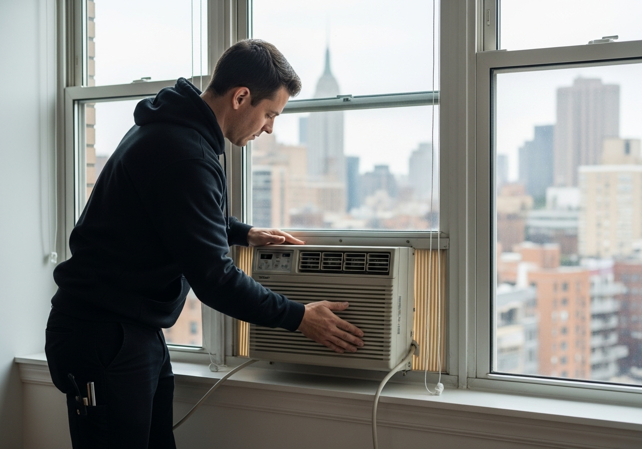 We professionally instal, remove and re-install window-mounted A/C units of any type and in any window, assuring safe A/C operation and window functionality -